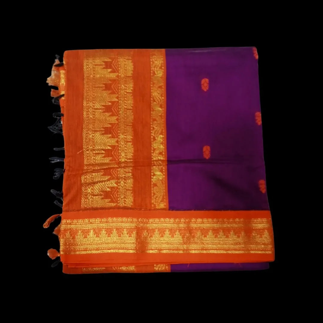 The M C Kalyani Contrast Saree is crafted from superior yarn and features a grand jari border, offering a refined and stylish look for any occasion. The texture ensures maximum comfort, allowing the wearer to enjoy both ease and sophistication. Whether for religious ceremonies, weddings, or festive events, this saree adds a touch of tradition while providing lasting comfort throughout the day.