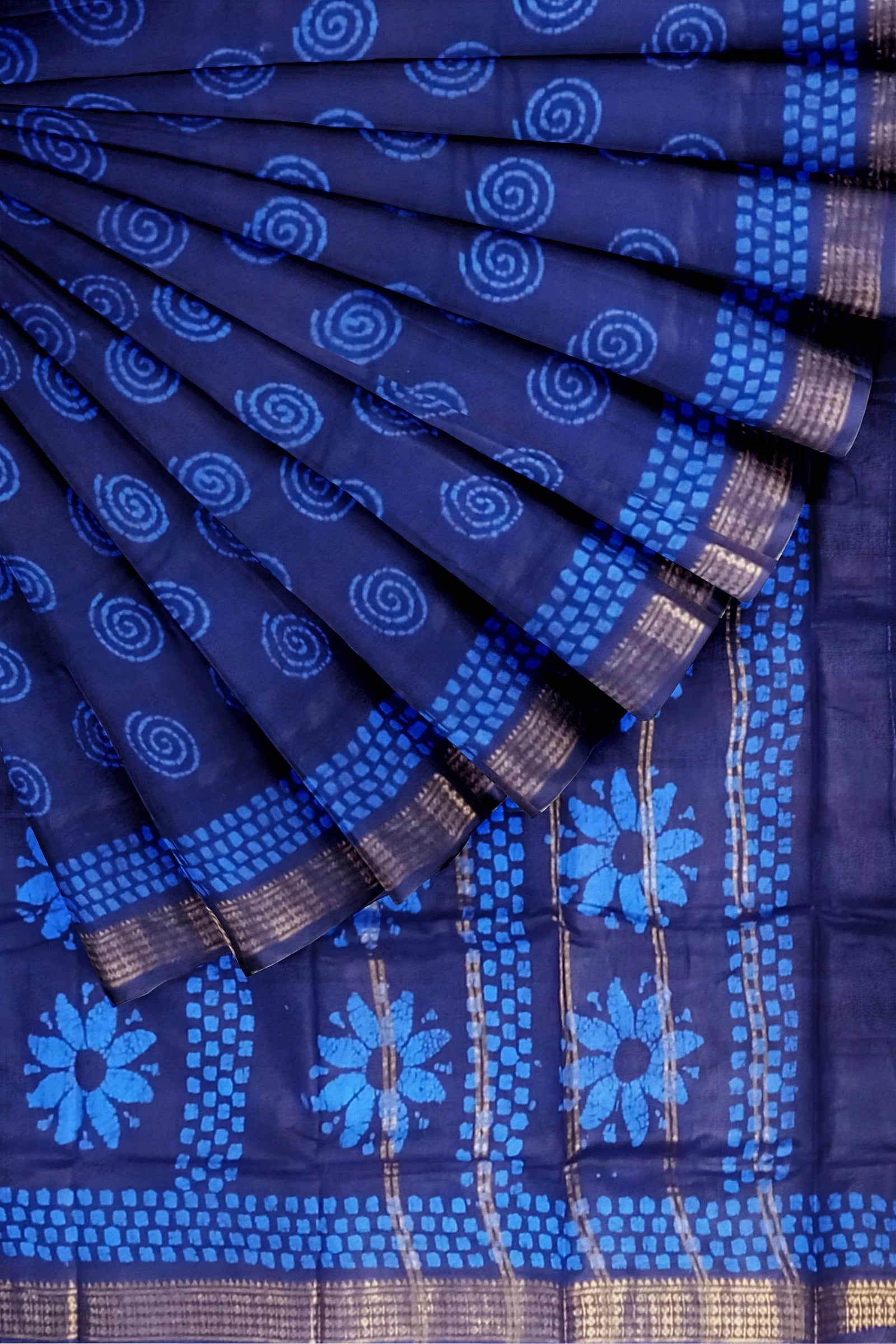 MADURAI MUL MUL COTTON BATIK WAX PRINTS JARI BORDER 9 YARDS SAREES