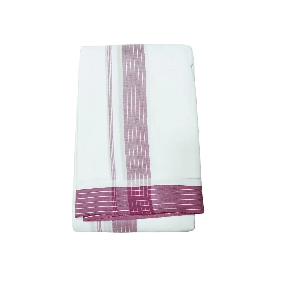 The Men Premium Panchakacham Dhoti is crafted from superior cotton yarn and features an elegant fancy border, offering a refined and stylish look for any occasion. The texture ensures maximum comfort, allowing the wearer to enjoy both ease and sophistication. Whether for religious ceremonies, weddings, or festive events, this dhoti adds a touch of traditional while providing lasting comfort throughout the day